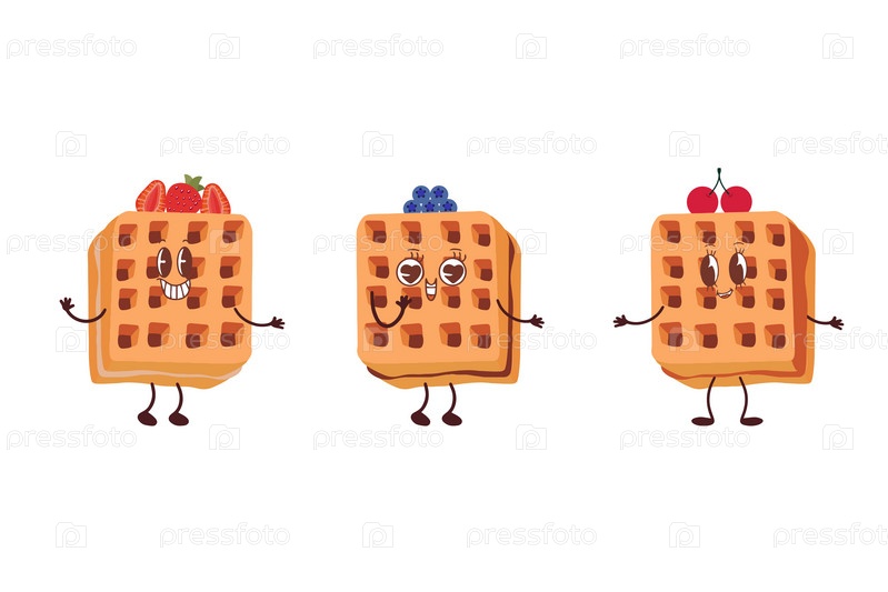 Значок вафли с различными начинками. Векторная иллюстрация вафель в стиле каваи, выпечка на завтрак, сладкая закуска