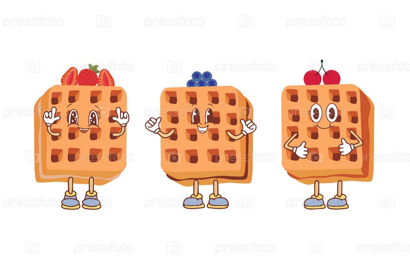 Значок вафли с различными начинками. Векторная иллюстрация вафель в стиле каваи, выпечка на завтрак, сладкая закуска