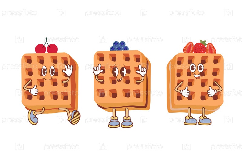 Значок вафли с различными начинками. Векторная иллюстрация вафель в стиле каваи, выпечка на завтрак, сладкая закуска