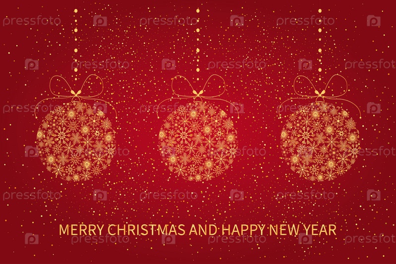 Праздничная рождественская открытка с елочными шарами из снежинок. Поздравительная открытка с Рождеством и Новым годом