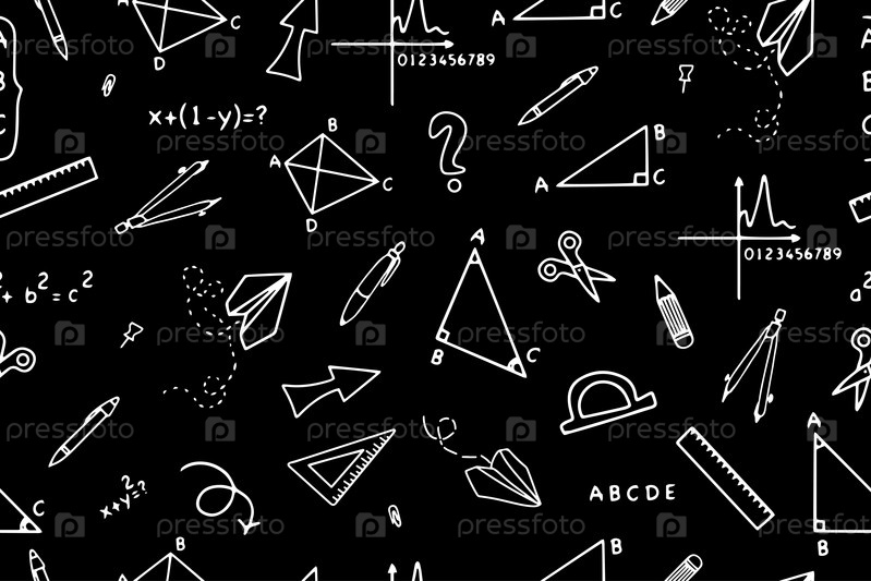 Возвращение в школу карандашные рисунки бесшовный шаблон со школьными принадлежностями, уравнениями и геометрическими фигурами в стиле doodle