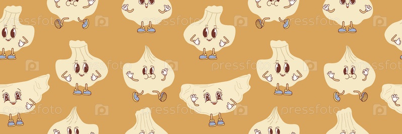 Бесшовный узор из забавных пельменей в стиле каваий. Векторная иллюстрация. Векторная иллюстрация
