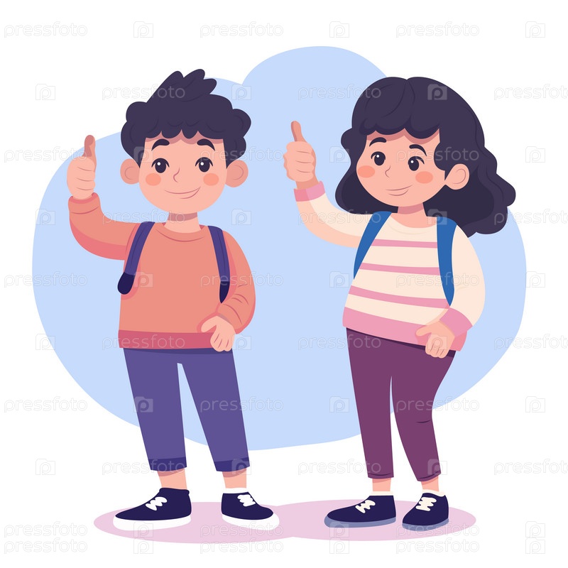 Милые мальчик и девочка показывают большие пальцы вверх