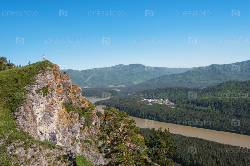 Человек стоит на вершине скалы