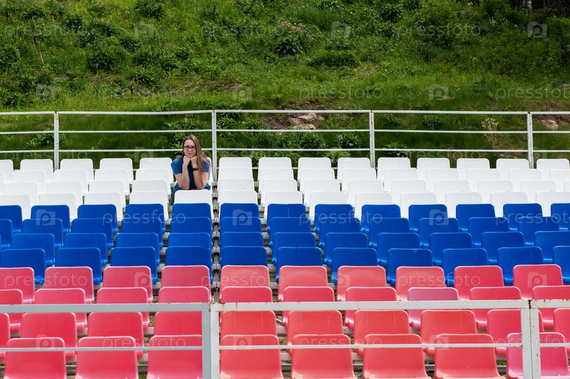 Одинокая женщина на пустом стадионе под открытым небом