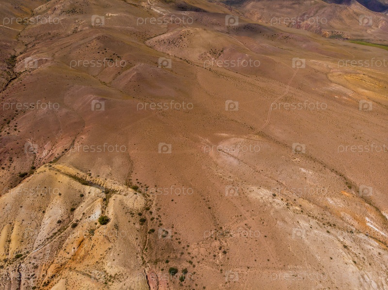 Аэрофотоснимок текстурированных желто-красных гор, напоминающих поверхность Марса