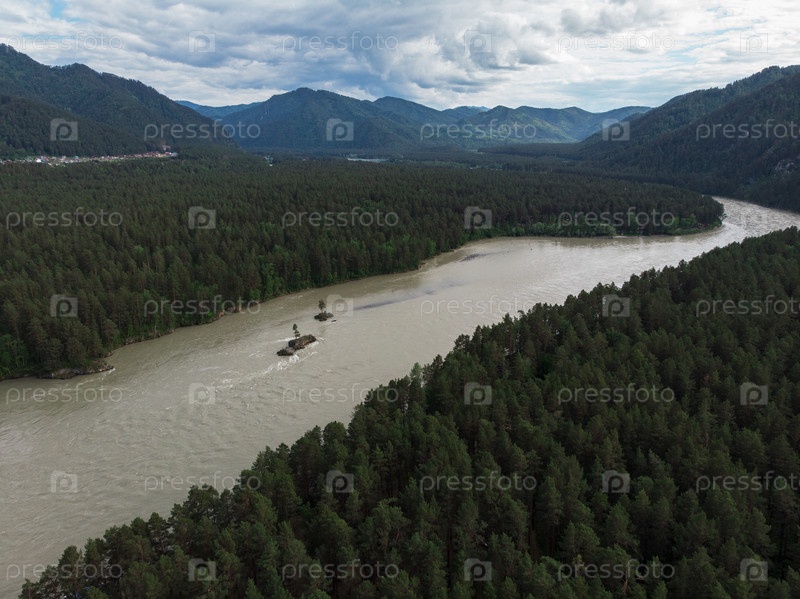 Вид с воздуха на реку Катунь в горах Алтая