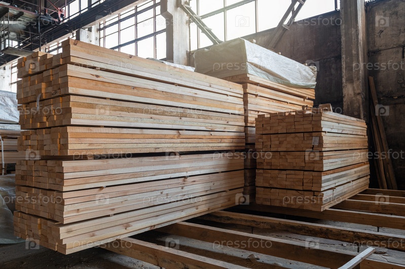 Сложенные деревянные доски крупным планом на складе пиломатериалов. Концепция деревообрабатывающей промышленности