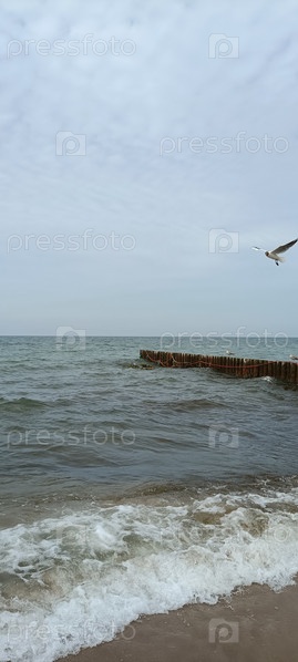 Полет чайки над морем