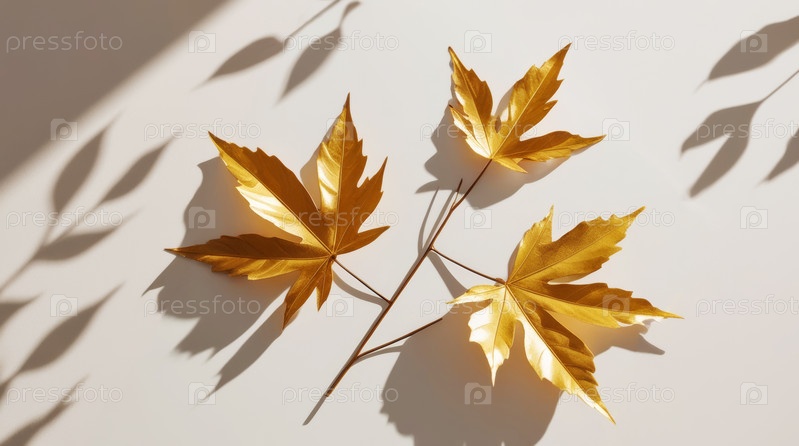 Золотистые листья отбрасывают мягкие тени на светлом фоне, создавая уютную и гармоничную атмосферу