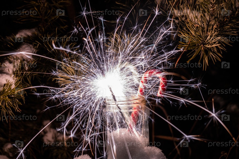 Сверкающий бенгальский огонь на размытом фоне. Бенгальские огни. Рождественский фон с бенгальским огнем. С Новым годом. Яркий бенгальский огонь, создает праздничную атмосферу с летящими яркими искрами