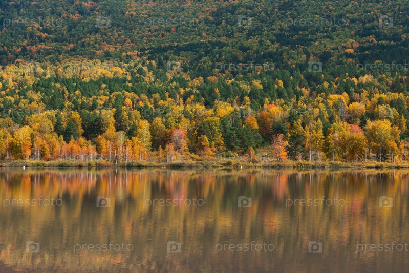 Осенние отражения озера Манжерокское, Республика Алтай, Россия