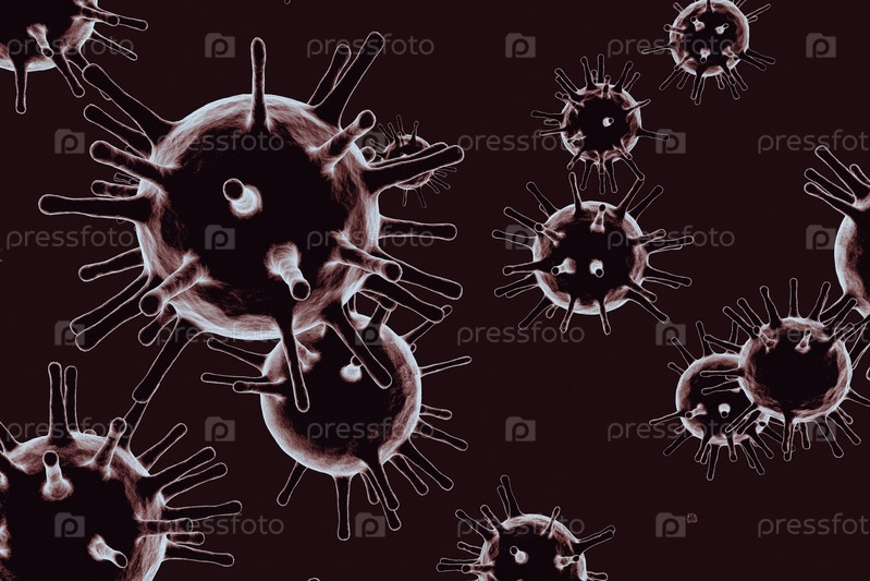 3D-иллюстрация коронавируса короны COVID-2019 в микроскопе