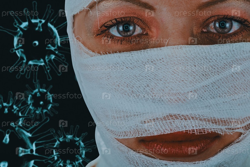 Женщина с иллюстрацией COVID-19 на зрачках.Концепция зараженного COVID-19