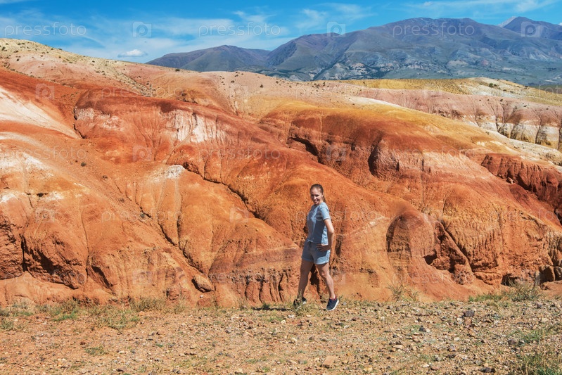 Женщина в долине Марса, пейзажи в горах Алтая, Кызыл-Чин, Сибирь, Россия