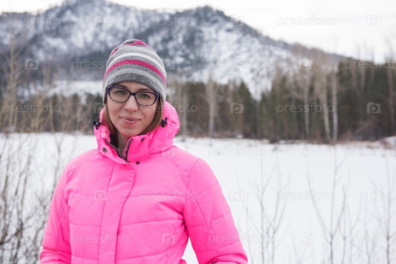 Счастливая женщина отдыхает на вершине горы в прекрасный солнечный весенний день, в горах Алтая. Концепция путешествия и отпуска