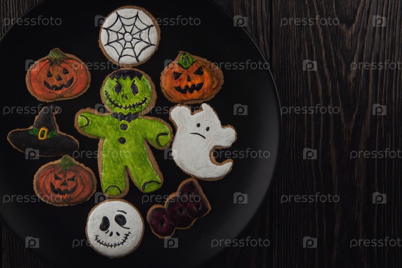 Домашнее имбирное печенье на тему Хэллоуина на деревянном столе