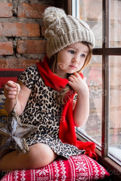 Грустная девочка сидит у окна