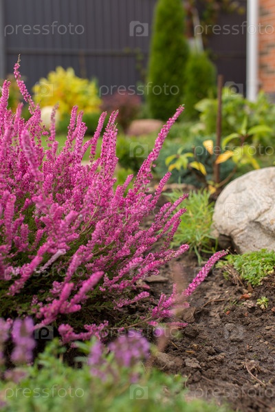 Вереск цветущий в саду осенью