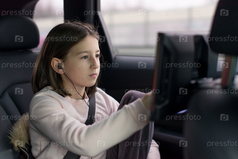 Девочка увлеченно смотрит в планшет