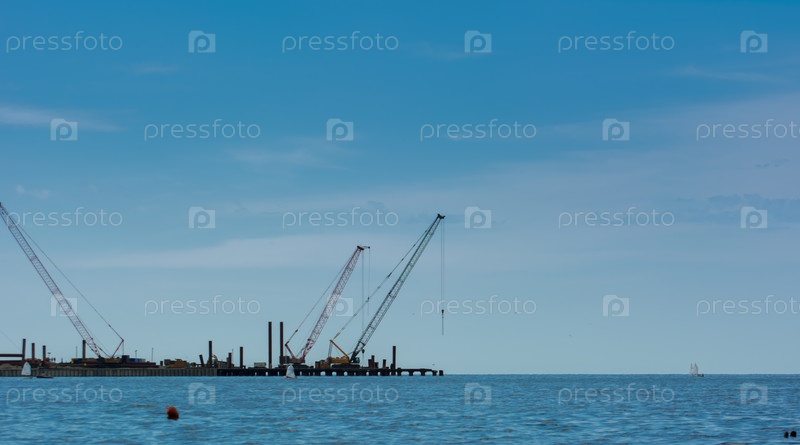 Морской порт с большими кранами в море