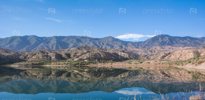 Горное голубое озеро Иссык-Куль Кыргызстан