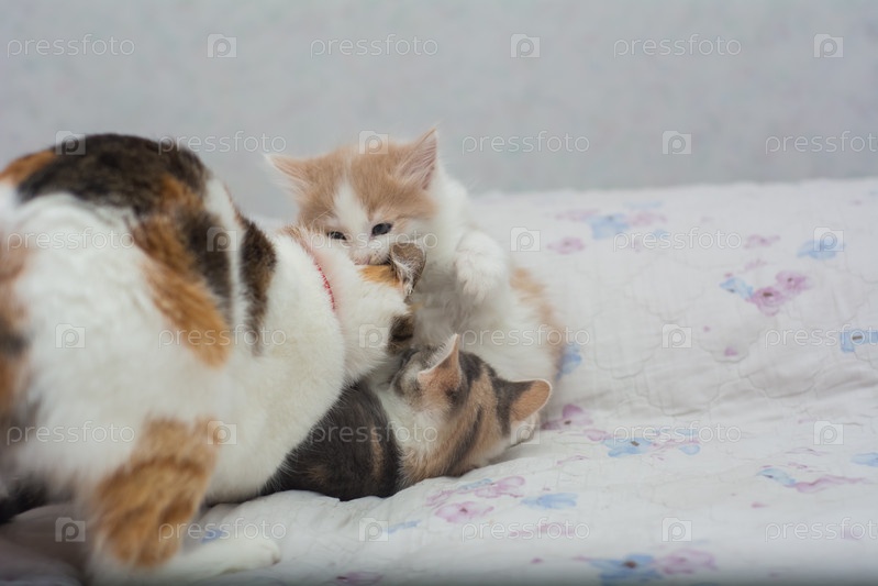 Котята разных окрасов играют друг с другом