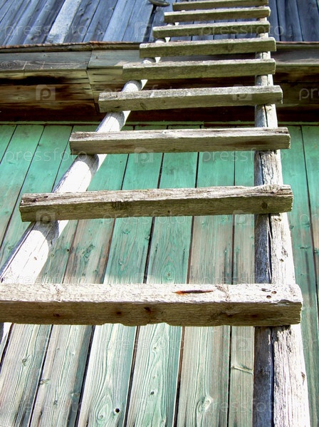 Высокая старая деревянная лестница