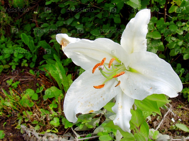 Цветники у дома. Цветок белой лилии