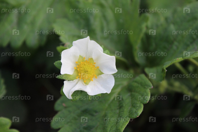 Кусты цветущей клубники с мелкими белыми цветками весной плодоносят