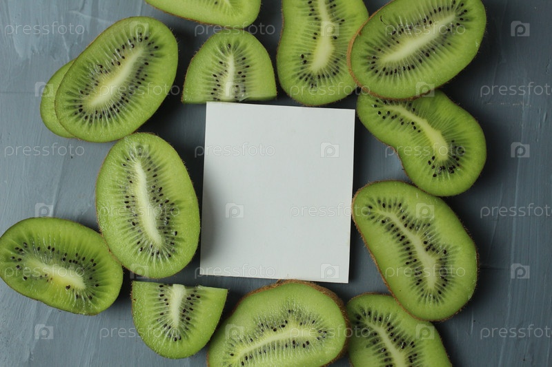 Фон из фруктов, кусочков киви, зеленый цвет с черными семенами с местом для текста, макет copyspace