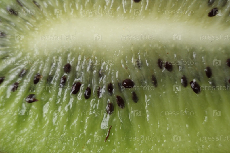 Киви крупным планом. Макрофотография ломтика киви Зеленый фрукт с черными семенами