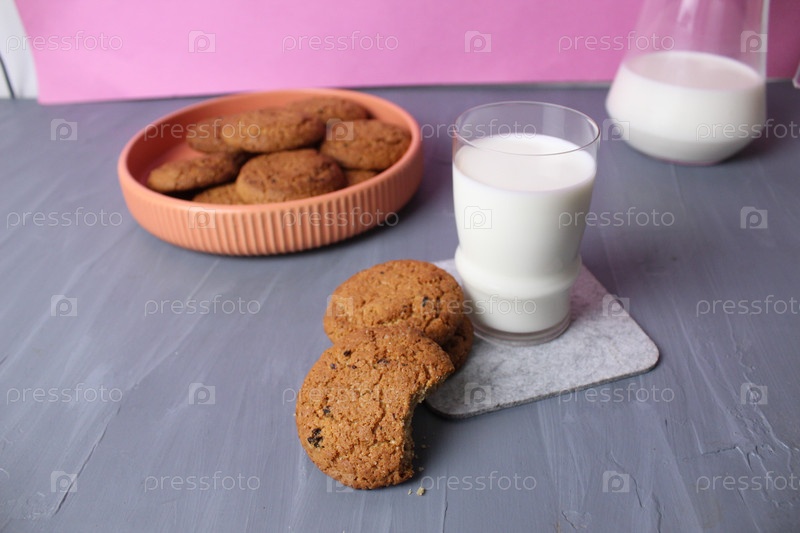 Овсяное печенье со злаками на сером фоне. Домашняя выпечка. Здоровый перекус