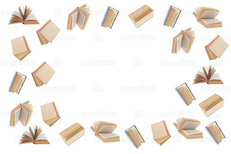 Коллаж из книг, расположенных по краям изображения и образующих рамку со свободным пространством в центре
