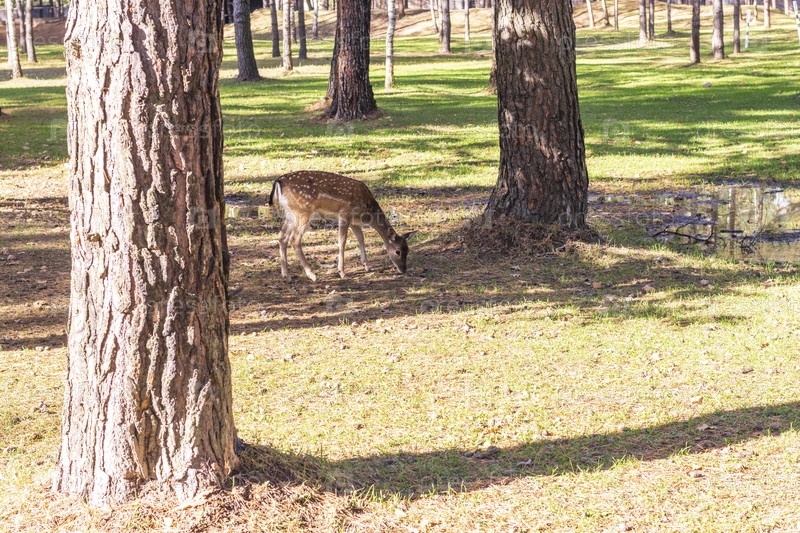 Кадр близкого знакомства оленя с людьми. Дикая природа