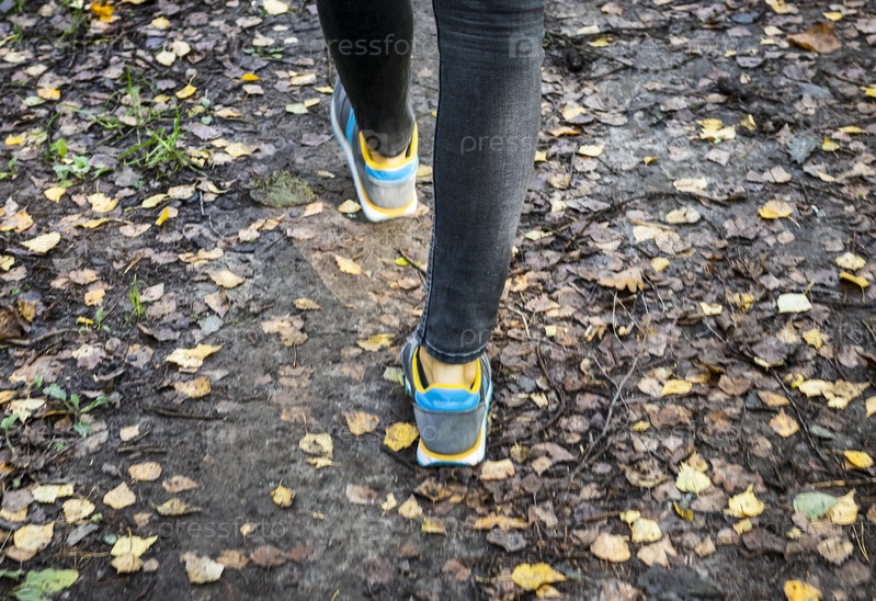 Женщина идет по лесной тропе. На открытом воздухе
