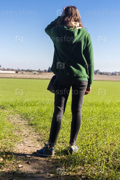 Женщина идет по лесной тропе. На открытом воздухе