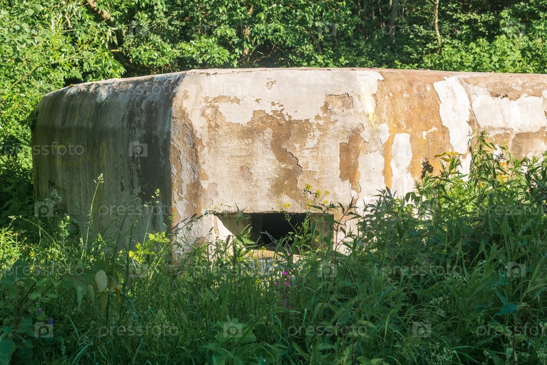 Старый заброшенный бетонный дот среди травы