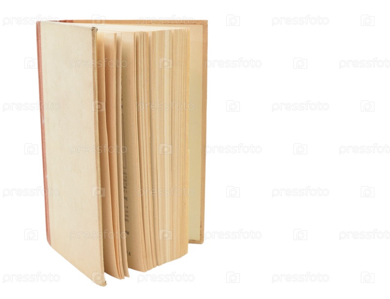 Слегка раскрытая книга в твердой светлой обложке и розоватом переплете, расположенная вертикально