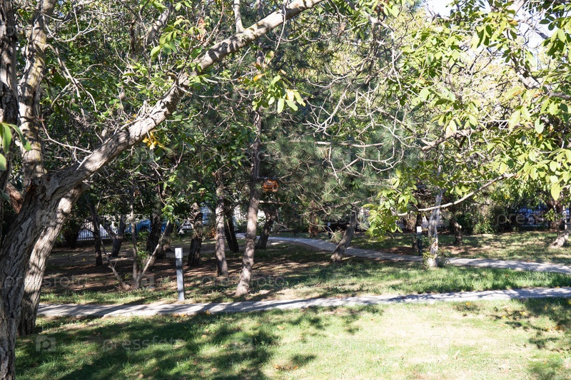 Дорожка из каменной плитки в ореховой роще Анапы