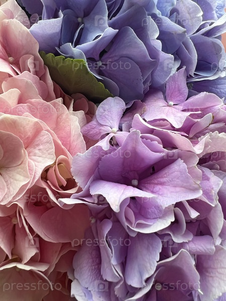 Букет разноцветных гортензий крупным планом