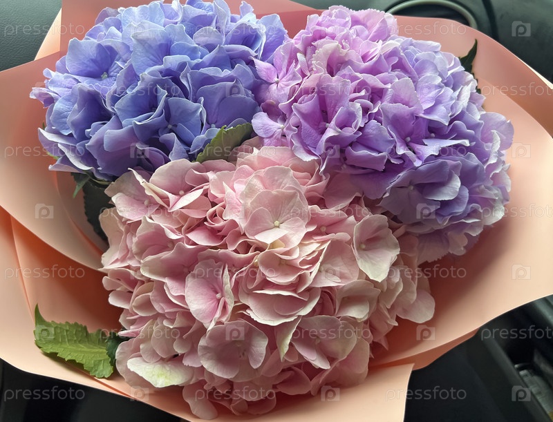 Букет разноцветных гортензий крупным планом