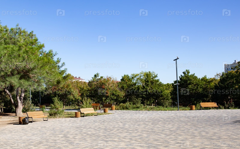 Дорожка из каменной плитки в ореховой роще Анапы летом