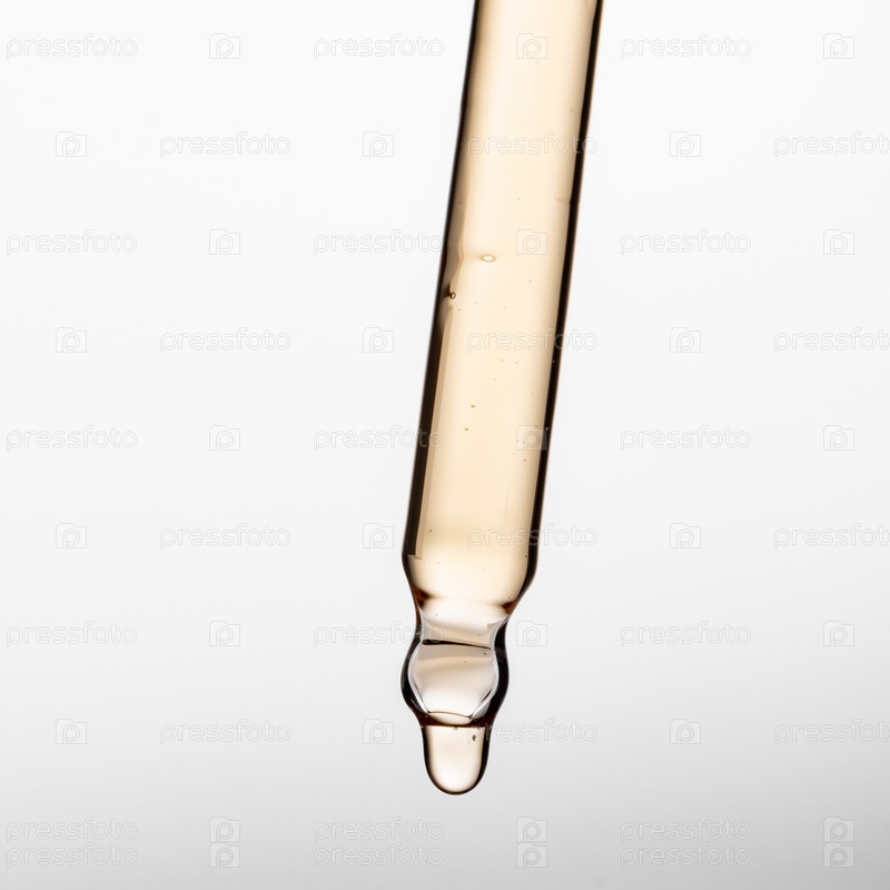 Пипетка с сывороткой, гелем, маслом или другим косметическим средством на белом фоне