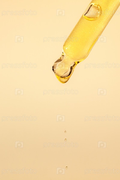 Пипетка с сывороткой, гелем, маслом или другим косметическим средством с падающей каплей. Макро крупным планом