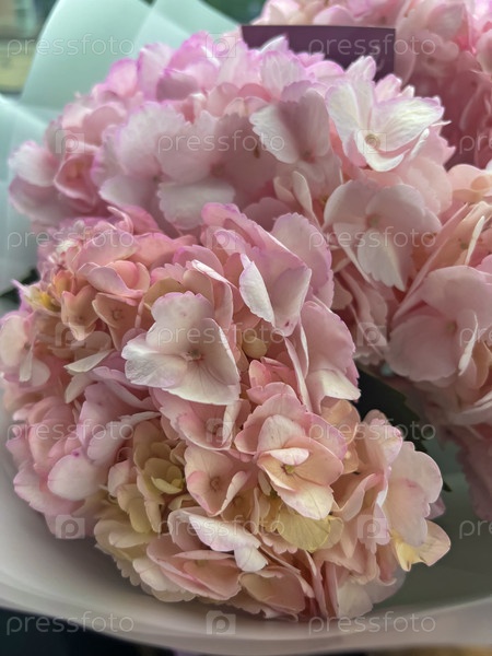 Букет розовых гортензий крупным планом