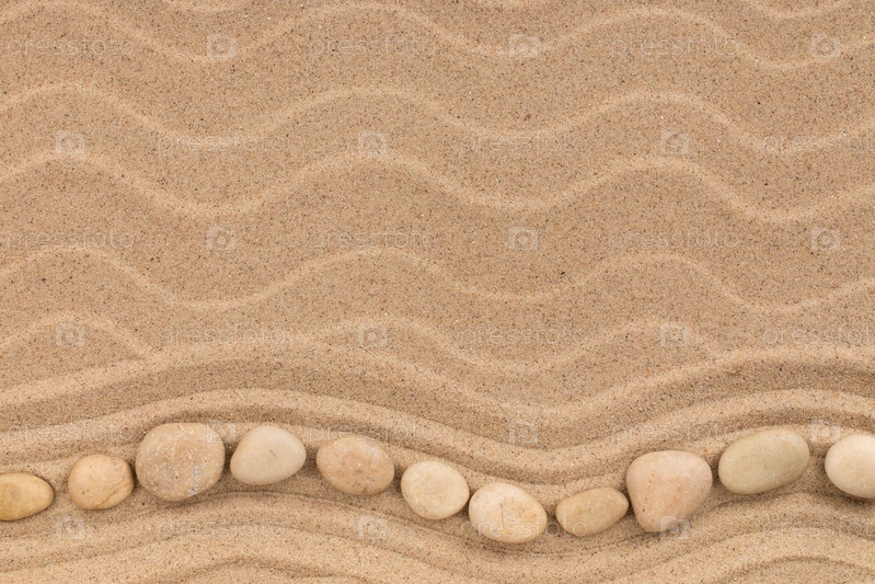 Волнистая линия из белых камней, лежащих на песке пляжа. Вид сверху
