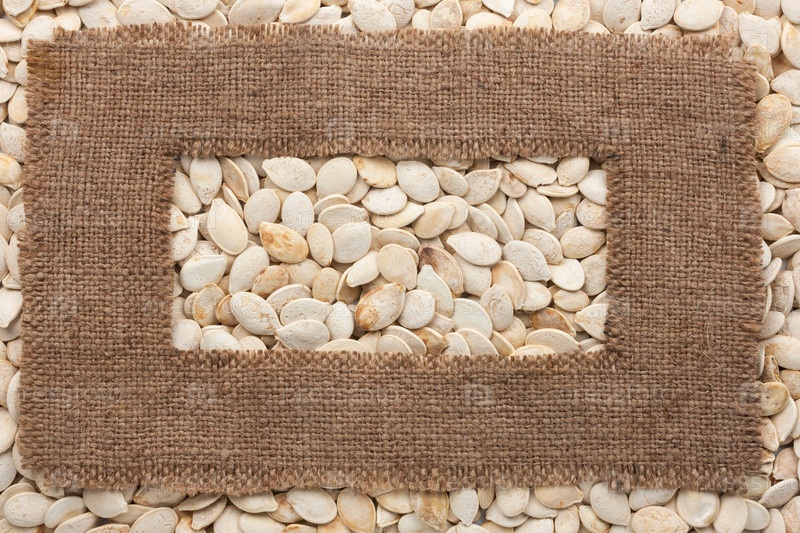 Каркас из грубой мешковины лежит на тыквенных семечках