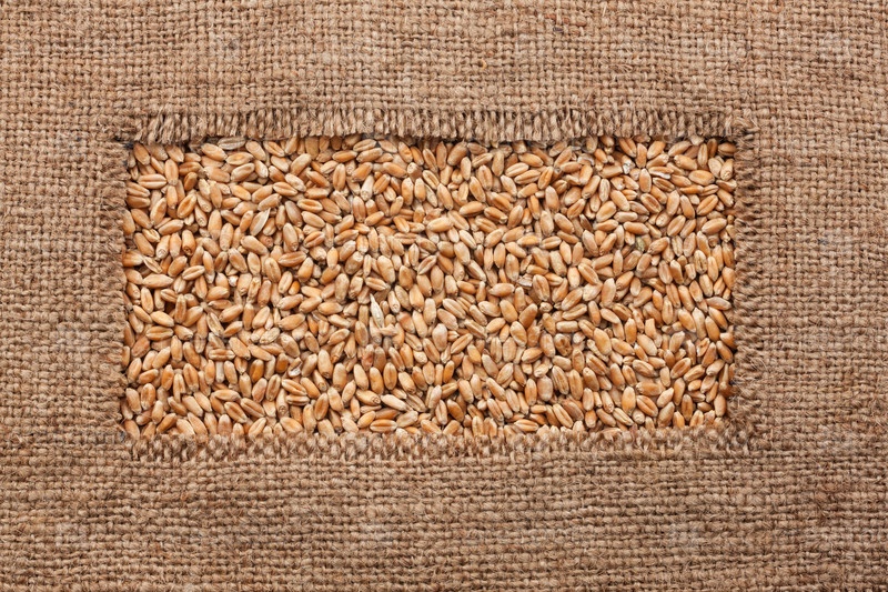 Каркас из грубой мешковины лежит на зернах пшеницы