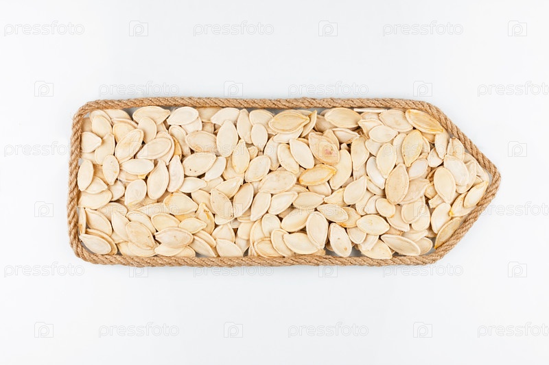 Указатель из веревки, наполненный семенем тыквы. Изолированный